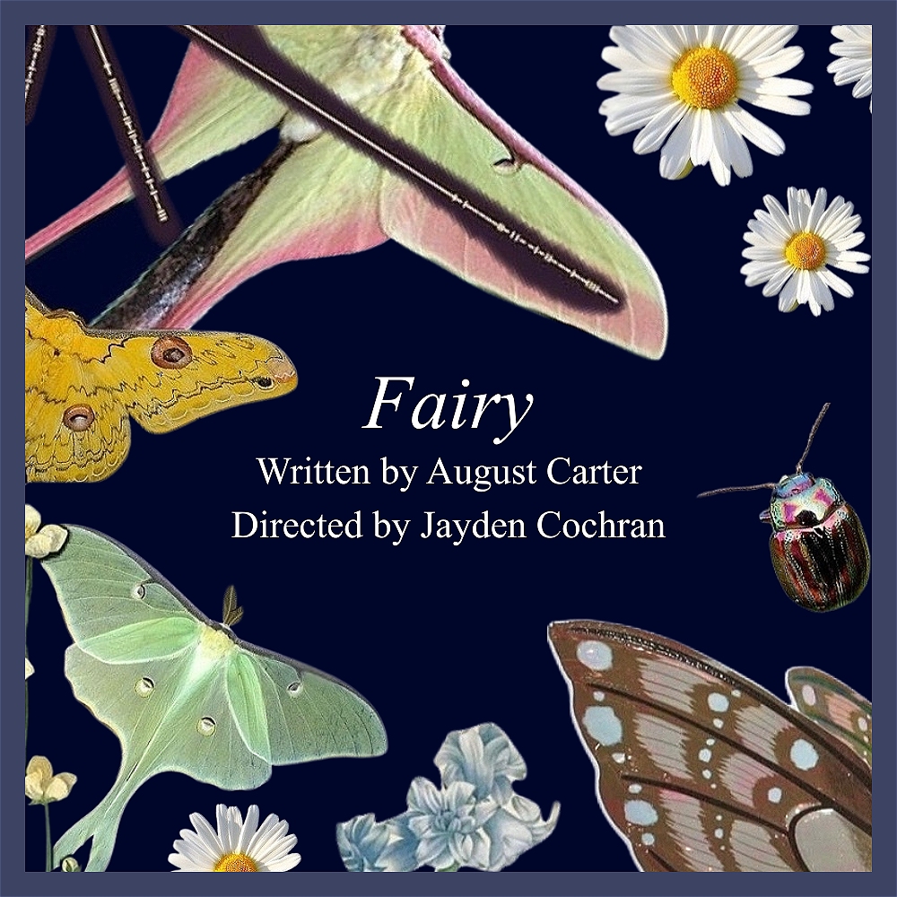 ‘Fairy’ is a fifteen-minute play written by August Carter and directed by Jayden Cochran. Maggie, a curious, precocious little girl, happens upon Prince Juno, prince of the fae. Juno then whisks Maggie back to his kingdom to help him convince his mother, the queen, to allow Juno to marry whom he wishes. ‘Fairy’ is a story for the whole family about love, creativity, and the importance of time.